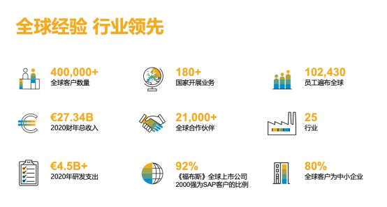 SAP 現(xiàn)任全球 CEO 為 SAP 執(zhí)行董事會(huì)成員柯睿安 (Christian Klein)?骂0步衲 41 歲,是德國 DAX 藍(lán)籌股指數(shù)企業(yè)中最年輕的 CEO。SAP 是企業(yè)應(yīng)用軟件市場的佼佼者,致力于幫助各行各業(yè)、各種規(guī)模的企業(yè)實(shí)現(xiàn)卓越運(yùn)營:全球 77% 的交易收入都與 SAP 系統(tǒng)有關(guān)。SAP 為中小企業(yè)用戶提供基于財(cái)務(wù)、供應(yīng)鏈、人力資源、客戶關(guān)系等多方面的管理軟件,并結(jié)合機(jī)器學(xué)習(xí)、物聯(lián)網(wǎng)、云計(jì)算等現(xiàn)代化技術(shù)為企業(yè)提供深層次的洞察力,幫助客戶轉(zhuǎn)型為智慧企業(yè)。SAP 的端到端應(yīng)用和服務(wù)套件可以幫助客戶實(shí)現(xiàn)運(yùn)營盈利,不斷自我調(diào)整,并創(chuàng)造差異化優(yōu)勢。
